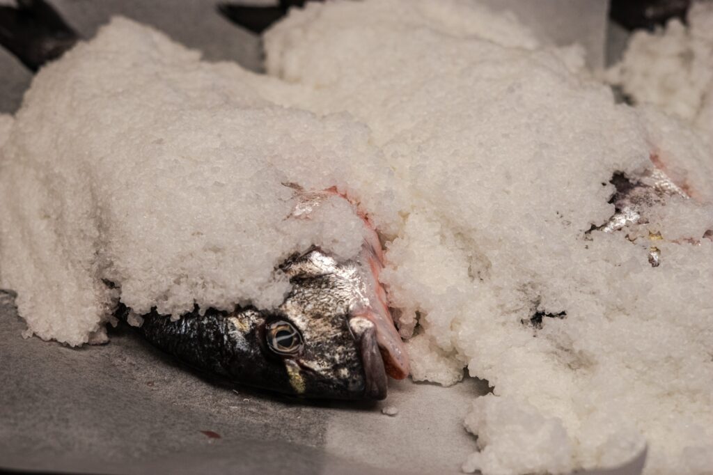 - Leg de kool in koud water met het zeezout. Knijp na 20 minuten de kool uit, laat uitlekken, en zorg dat het vocht goed uit de koel is.